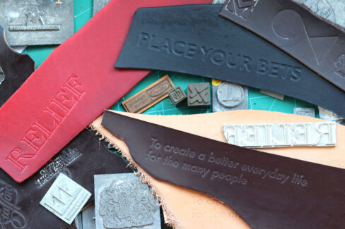 Working with leather embossing techniques and gold-blocking stamps – made from corporate slogans of William Hill, where her dad worked on Walsall high street, and IKEA (Junction 9), where her mom worked in the 1990s, Sophie reimagines these everyday impressions as sites of memory and labour. She has also incorporated redundant corporate dies from Hadfield’s, once used to mark prestige onto surfaces, now reworked to question how corporations shape identity and belonging.