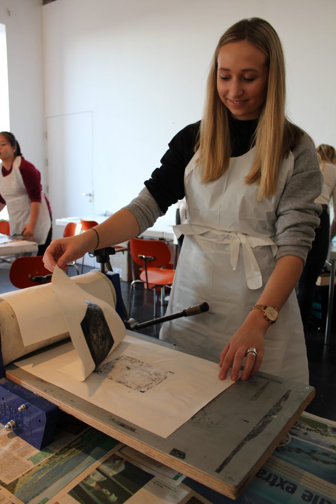 - Pupils roll ink onto the surface and print the acetate using a professional printing press.